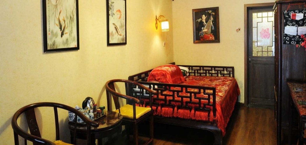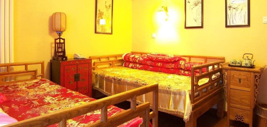 Double Happiness Hotel is conveniently located 25 km from Beijing Airport and is close to the Forbidden City and Tiananmen Square. This hotel welcomes you in a traditional Chinese atmosphere. This atmosphere so particular to China is recalled down to the smallest detail: from the small red lanterns hanging on the wall to the statues adorning the entrances. The dark wood furniture of the rooms and the red fabrics reaffirm this historical and traditional style. A buffet breakfast is served each morning while the restaurant offers both Chinese and Western dishes. Tables and chairs have been set up on the terrace so that guests can enjoy the sunshine while having their meal.