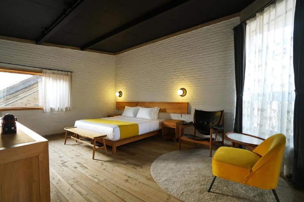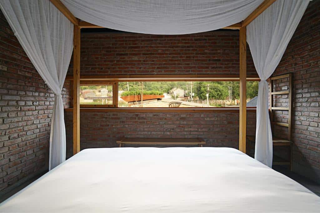 CMYK Stoneyards features 8 rooms, each a unique creation. Every room incorporates authentic Great Wall stones into its walls, offering a truly immersive experience. Amenities include private bathrooms, coffee/tea makers, a work desk, and carefully selected toiletries. Rooms offer spectacular views of the Great Wall, particularly from panoramic terraces. Elevated beds/platforms in all accommodations, mountain views, and interior courtyards complete the experience. Asian breakfast is served on-site, with shared kitchen facilities available for travelers wishing to prepare meals together. Family rooms are ideal for travelers on a China circuit adventure.