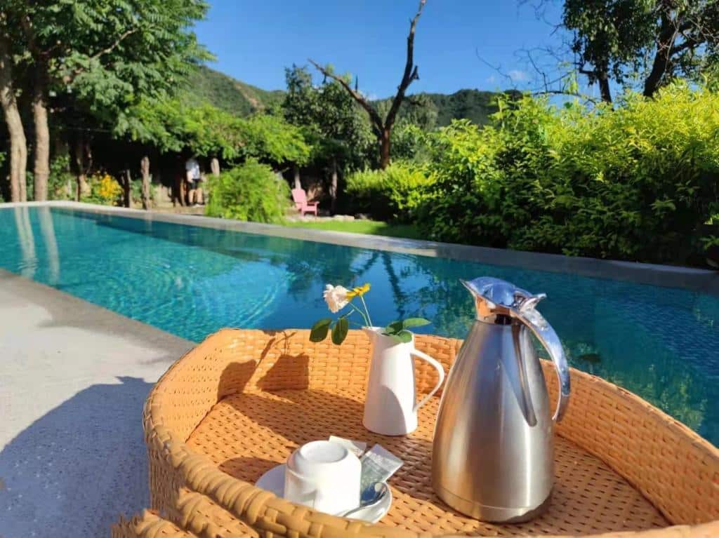 CMYK Stoneyards offers a comprehensive range of premium amenities and services. The seasonal outdoor swimming pool with mountain views, verdant garden, and shared terrace create an ideal relaxation setting. An on-site restaurant welcomes travelers, complemented by a bar, media room for film nights, a library, and a ping-pong room. Complimentary Wi-Fi is available throughout, and room service completes the hospitality offering. Free parking, electric vehicle charging stations, and concierge services ensure a hassle-free stay. Most importantly, the establishment offers guided hiking routes on the wild Great Wall, walks in traditional vegetable gardens, and mountain discovery itineraries. An on-site barbecue allows guests to enjoy the natural setting, while French-speaking staff provide personalized assistance in planning your China circuit.