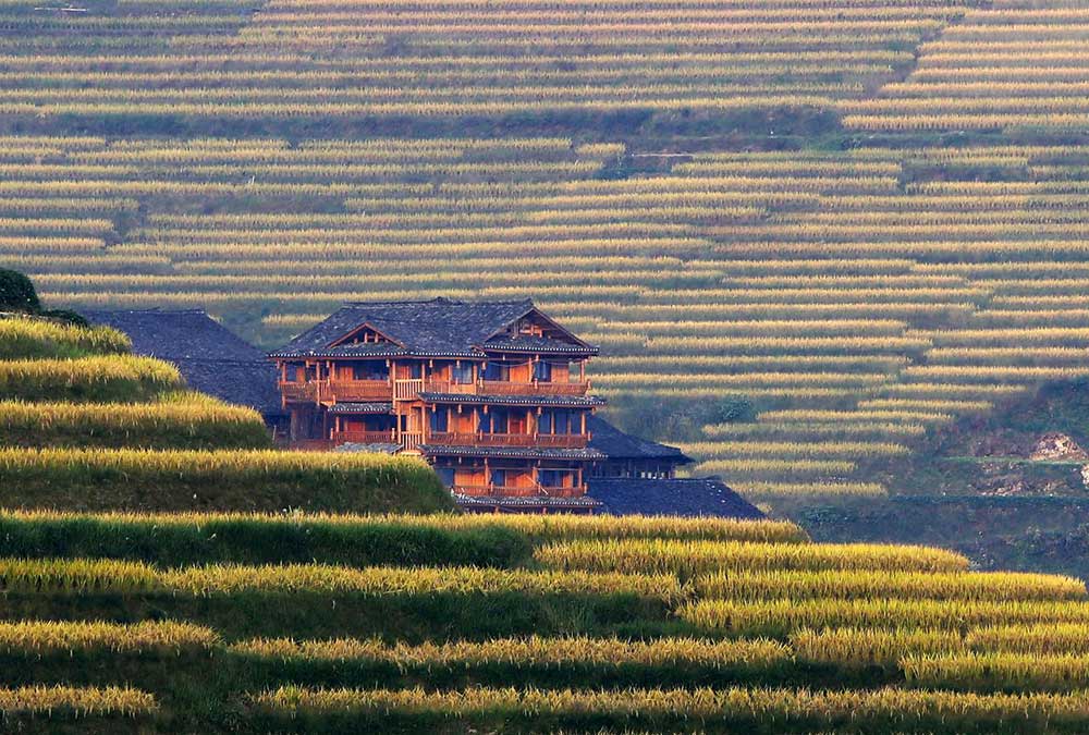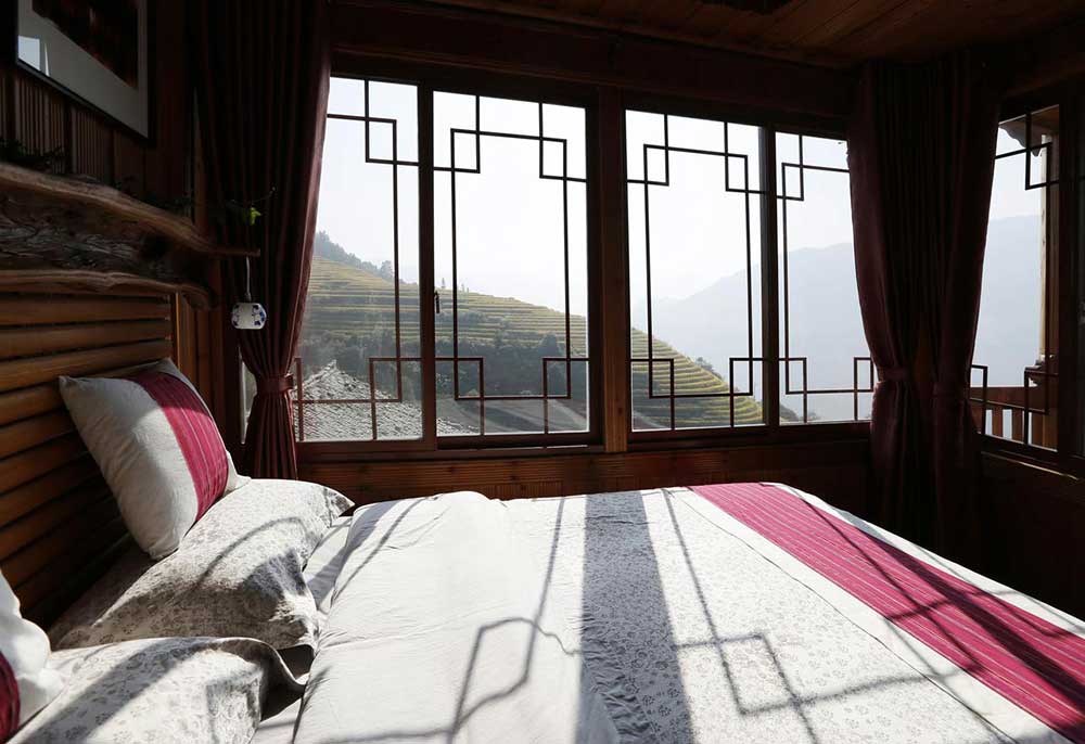 Longji One Art Hotel is located in the heart of Ping’an-Longsheng, and the superior rooms offer views of rice fields and hillside cottages. Compared to other inns in the village, it is highly regarded for its location, superior charm and cozy atmosphere. Like most hotels in Ping’an-Longsheng, Longji One Art’s exterior is clad in wood and features traditional Zhuang ethnic architecture. Rooms are air-conditioned and all are equipped with a TV and free Wi-Fi. The hotel’s restaurant serves both Chinese and Western dishes. It takes 1.5 hours by car from Guilin Airport.