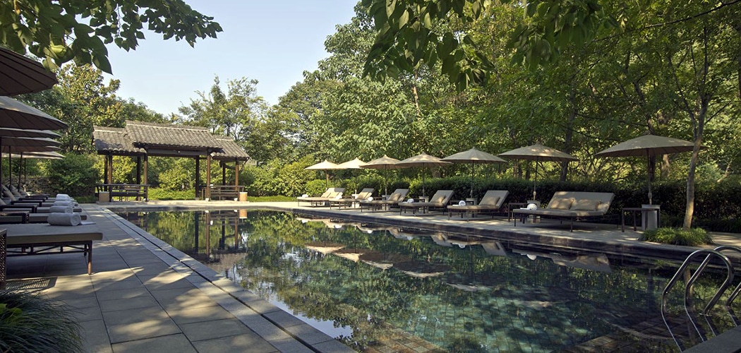 Amanfayun in Hangzhou enjoys a very large property not far from West Lake. This luxury hotel has kept the spirit and decor of traditional Chinese villages. Surrounded by lush vegetation, the small terraces aspire to serenity and tranquility. The location of Amanfayun is ideal for discovering the most secluded corners of the region, the Buddhist temples and the countless pagodas nearby. The city center of Hangzhou is easily accessible by car, about 20 minutes away. All rooms are different from each other but they are all quiet and comfortable. They are also all equipped with underfloor heating, air conditioning and internet connection. The restaurant serves traditional dishes of the region.
