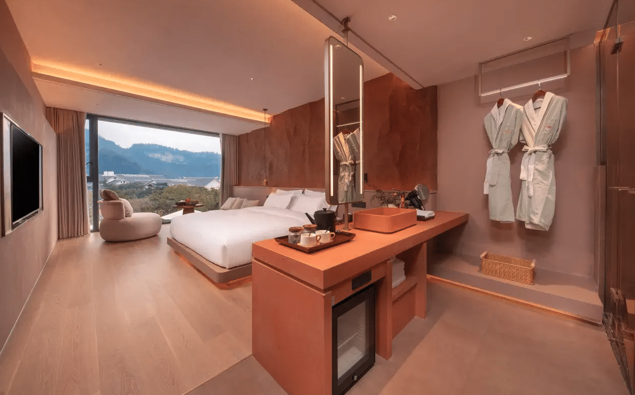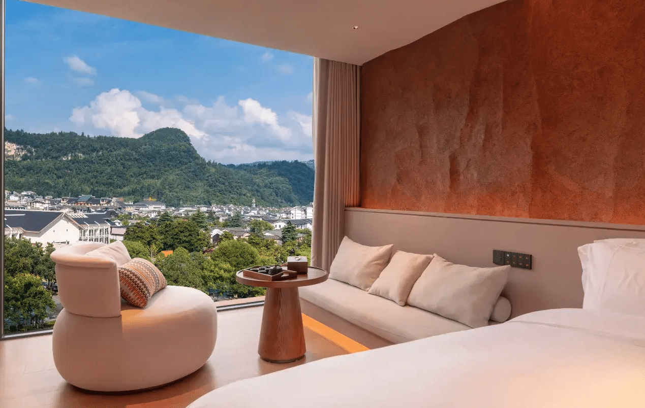 Zhangjiajie Qishi Li Cave Homestay embodies an innovative philosophy of tourism: the harmonious integration of premium accommodation within Zhangjiajie’s spectacular natural landscapes. This 5-star property, ranked No. 3 among Hunan’s vacation homes, opened in 2025 to offer an immersive experience without equal. With an exceptional 9.7/10 rating based on 709 verified reviews (99% positive feedback), this establishment redefines the concept of mountain tourism accommodation. Qishi Li offers 33 rooms distributed across 13 unique room types, each designed as a personal escape at the heart of nature. The architectural themes, centered on stones and caves, blend contemporary aesthetics with Zhangjiajie’s fascinating geological environment. Each space embodies the “design-oriented” concept: an infinity pool overlooking mountains, a spectacular cave bar, jungle camping, sky mirror, and premium amenities (underfloor heating, central air conditioning, complete smart-home systems, constant-temperature showers). For travelers seeking authenticity and comfort, this property is a flagship destination for experiential tourism in China.
