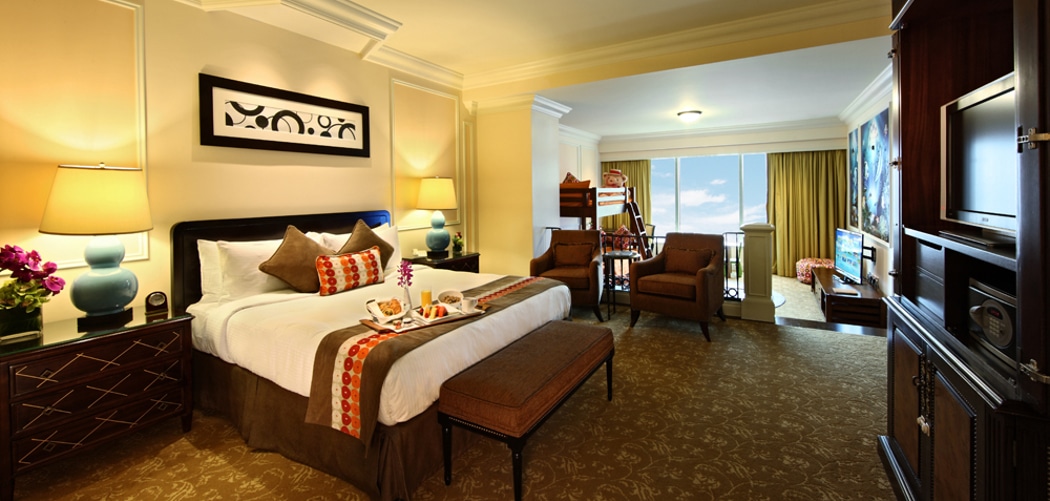 Luxury suites, boutiques, huge swimming pools, attractions of all kinds… Excess and gigantism are the two words to define the Venetian Macao Hotel. Inside the hotel, part of Venice has been recreated and you can even take a gondola ride. The 3,000 suites of the Venetian Macao offer a space rarely seen elsewhere. You can plan your trip in the area before relaxing in the lounge and choosing between a bathtub or shower in a marble bathroom. You would almost need a compass to navigate inside this palace. Plan several days to have time to discover everything. A free shuttle service allows you to reach the hotel from the airport or the port.