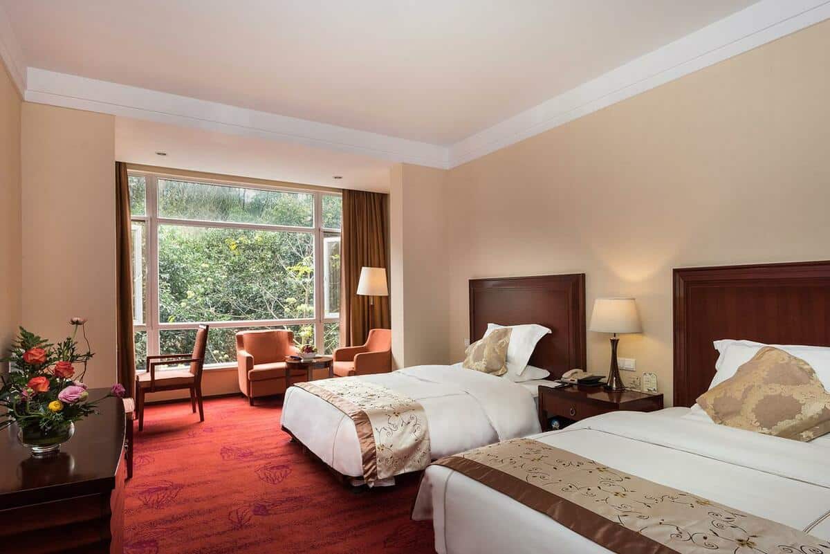 Located not far from the entrance of the Emei mountain, the hotel possesses a large area of more then 400 000 square meters thanks to its garden as wide as a forest. The hotel finds its position less than a 30 minutes drive from both Emei’s bus and train stations, while it takes about 2,5 hours to reach it from the Chengdu airport.
