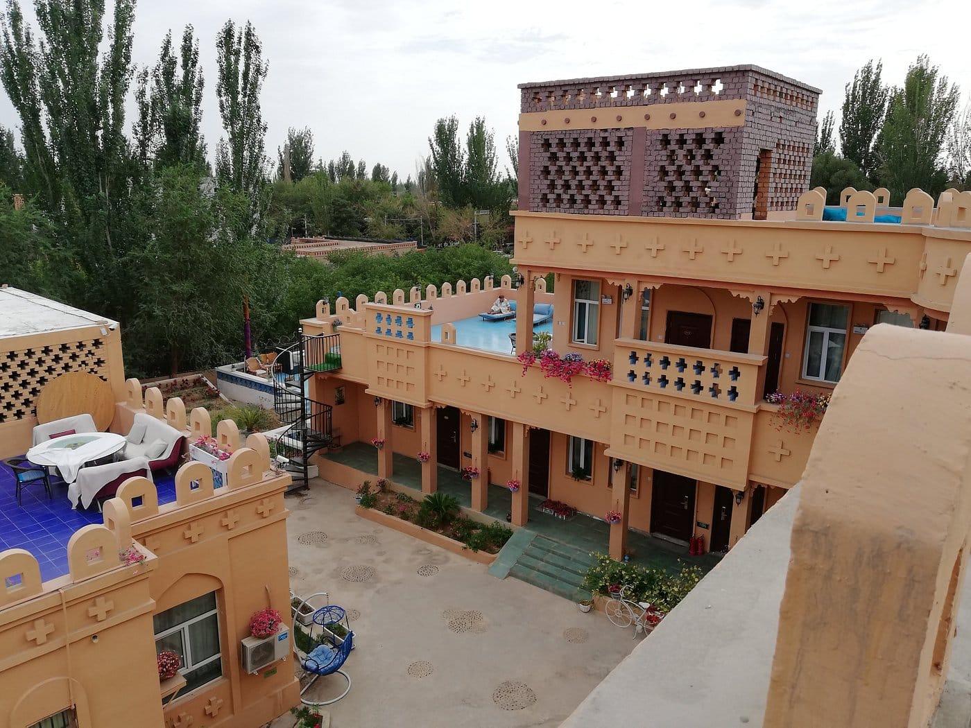 The hotel offers 12 elegant rooms, decorated with local touches and equipped with modern comforts. It features a restaurant serving Uighur and international cuisine, a traditional tea room and a peaceful garden ideal for relaxing after a day of exploring. Every morning, a homemade breakfast is served with fresh produce.