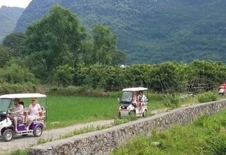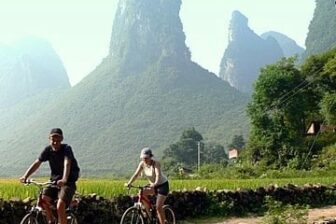 After breakfast, bike ride (or electric scooter with supplement of +50RMB/scooter, including for the guide) to the Wild Cave perched, away from the tourist circuits. The climb is done in a crack of the mountain on steps cut into the rock. Superb view from one side of the cave to the other. Continue the bike ride along the Yulong River, through sleepy hamlets, rice fields and fish ponds to the village of Jiuxian (Yulong River seen from the sky).