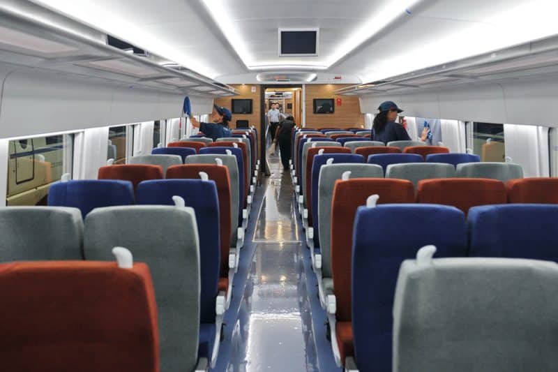The seats include a mini TV with a wide range of films, a power outlet, a foldable tablet in one of the armrests… Some trains may also offer free drinks, snacks, blankets…