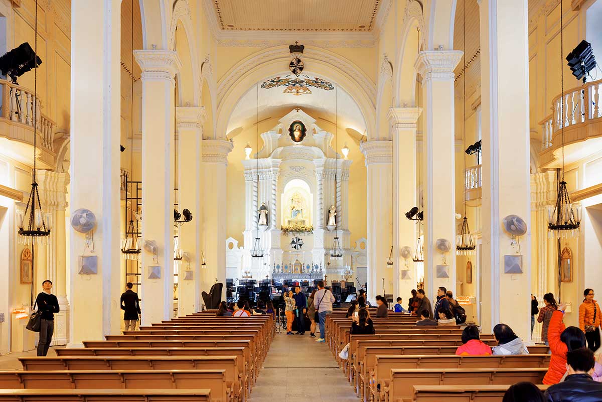 Listed as a UNESCO World Heritage Site in 2005, Senado Square, or Place du Sénat, is a pleasant pedestrian zone.For centuries, it’s the urban center of the country and remains today a real cultural and popular place in Macao. Considered by many to be one of the most beautiful places in the city, the square is surrounded by beautiful yellow facades, the last colonial memories.Its floor is paved with black and white mosaics shaped like waves. This work has been done by Portuguese in 1990.Senado Square covers more than 4400m2 and extends to the Ruins of St Paul. You can easily join them on foot, thus offering you a pleasant walk. Ideal for discovering the Church of St. Dominic, the most beautiful of Macao, identifiable with its large yellow and white facade, the Holy House of compassion or the general post office.