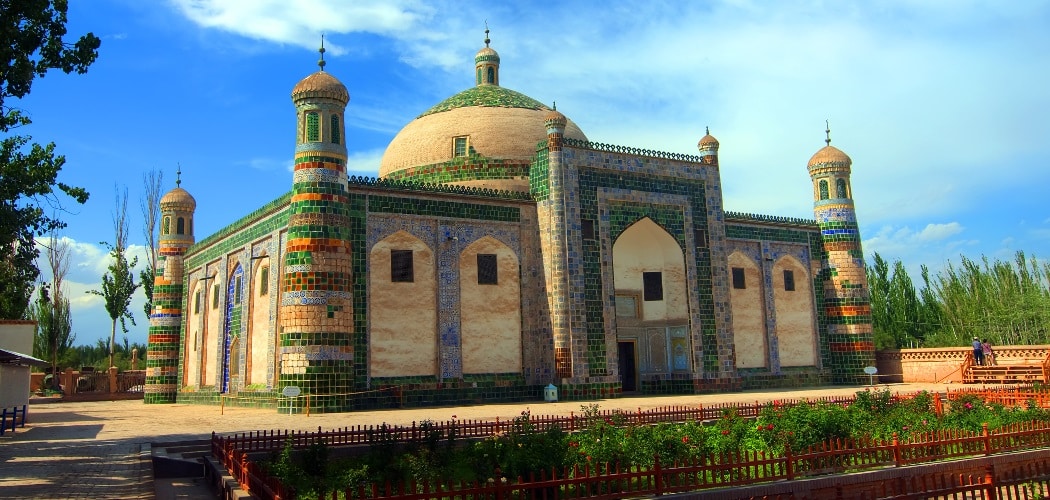 The tomb Abakh HojaAbakh Hoja Tomb is located 5 kilometers north east of the city. It is, however, better known as the “Xiangfei Tomb”, a Uighur woman of the Qing dynasty who was imprisoned and forced to marry Emperor Qianlong. In fact, the grave is her grandfather’s. Xiangfei is a very strong symbol, as much for the Uighurs as for the Han. She is considered a heroine by the Uighurs and as a heroine representing anti-Qing and anti-feudal. Legend has it that Xiangfei committed suicide under the pressure of the shenanigans orchestrated by Empress Dowager.The buildings of the tomb are high and resemble those of a mosque with blue and white colors and a green dome decorated with small minarets. On the dome, a crescent-shaped minaret is drawn. The real Xiangfei Tomb is inside, it is embellished with blue pottery with a beautiful pattern of blue flowers on a white background.The Idkah MosqueThe Idkah Mosque is the largest in China and the religious center of Kashgar. The call to prayer echoes throughout the city. The current structure was renovated and extended based on the original mosque built in 1442 for Shakesirmirzha, the leader of Kashgar. The mosque is built in yellow bricks, making it very visible from Id Kah Square.When this is not the time for prayer, tourists are allowed to enter the mosque. However, there must be covered arms and legs, for both women and men. The best time is early in the morning, when there are few faithful. The place is always full of pilgrims who come to pray. Outside the mosque, we can see some pilgrims flogging while dancing energetically, accompanied by musicians.The Sunday market of KashgarThe famous Sunday market has been here for more than 1500 years. The east of the city is transformed into a huge bazaar where peasants, merchants and traders from the regions and neighboring countries meet. There are more than 5,000 stalls and about 100,000 people a day. People come from all over central Asia to do business.The market offers a wide variety of products: crafts, livestock, vegetables, jackets, fabrics, carpets, embroidered blankets etc. You can find handicrafts from Pakistan, scarves from Turkey or dry fruits from Saudi Arabia. Thanks to its mix of cultures, the Kashgar market is a unique experience full of colors and flavors.